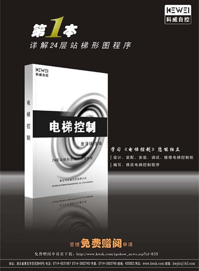 導(dǎo)語:由黃石市科威自控有限公司主持編寫的《電梯控制》一書,開始受理免費(fèi)贈(zèng)閱申請。