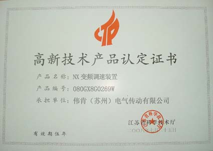 Vacon NX系列變頻器榮獲江蘇省高新技術(shù)產(chǎn)品認(rèn)定證書