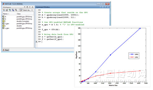 現(xiàn)在,越來(lái)越多的工程師和科學(xué)家可以借助MATLAB使用 NVIDIA的 具有支持 CUDA 的 GPU,其中包括基于 Fermi 架構(gòu)的最新 Tesla 20 系列 GPU。Parallel Computing Toolbox 可以使用戶無(wú)需學(xué)習(xí) CUDA 編程或?qū)ζ鋺?yīng)用程序進(jìn)行重大修改,即可訪問(wèn) NVIDIA CUDA 庫(kù)。