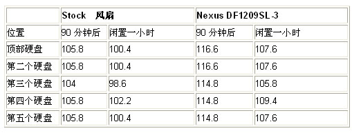 I為了看看如果使用一個(gè)帶有消音裝置的風(fēng)扇,會(huì)不會(huì)帶來(lái)溫度上的變化,我們使用了一個(gè)Nexus 92mm的DF1209SL-3風(fēng)扇代替原配的風(fēng)扇。Nexus僅會(huì)產(chǎn)生19.2分貝的噪音。它每分鐘的轉(zhuǎn)速為1500轉(zhuǎn),除非我用耳朵貼近它才可以聽到一點(diǎn)噪音,要不然我都不確定它到底是否在運(yùn)行中。下標(biāo)列出了兩種風(fēng)扇使用情況下的溫度監(jiān)測(cè)對(duì)比表。