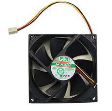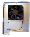 當(dāng)我們移開DS-500的后面板就會(huì)發(fā)現(xiàn)面板上面用4個(gè)標(biāo)準(zhǔn)螺絲釘固定住的92mm風(fēng)扇。一根標(biāo)準(zhǔn)的3Pin連接線可以方便用戶有效的控制DS-500的散熱性能。我希望以后所有這種平臺(tái)的廠商都可以提供標(biāo)準(zhǔn)的3Pin連接線,這樣用戶就可以很容易地通過升級(jí)系統(tǒng)的風(fēng)扇來(lái)達(dá)到靜音的效果。