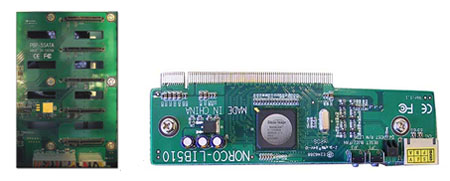 NORCO - 4618 SATA適配器是DS-500的附屬配件。它利用Silicon公司的SiI 3124-2CB364控制芯片,支持PCI-X。裝有Mac OS X 10.4.x 操作系統(tǒng)的PowerMac G4或者G5 能利用NORCO-4618上面的4個(gè)eSATA端口連接外圍設(shè)備或者SATA規(guī)范的設(shè)備。有很多的SATA設(shè)備可以通過NORCO-4618 SATA適配器開展工作。當(dāng)NORCO-4618轉(zhuǎn)接卡插在一個(gè)PCI-X的插槽上,DS-500就會(huì)通過SATA數(shù)據(jù)線連接到這臺(tái)電腦。蘋果機(jī)的用戶可以利用磁盤管理工具來(lái)設(shè)定硬盤和NORCO-4618/DS-500的連接。