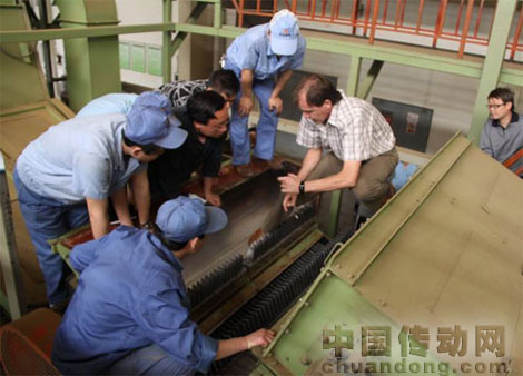 愛德森先生一行到公司后立刻投入到工作狀態(tài)中。在車間里,愛德森先生認真聽取了車間操作人員對設(shè)備運行中存在的一些疑問和問題,之后,便開始在車間里認真巡查,仔細研究每一個可能出現(xiàn)問題的環(huán)節(jié)。針對擺把臺間或出現(xiàn)堵料和解把率不高的問題,愛德森提出要控制擺把臺煙葉流量,做到布料均勻,無煙葉重疊或倒把現(xiàn)象。在他的指導(dǎo)下,設(shè)備維修人員還對解把刀的高度做了調(diào)整,在原來的高度基礎(chǔ)上適當?shù)倪M行了升高。經(jīng)現(xiàn)場試驗,收到了比較滿意的效果。
