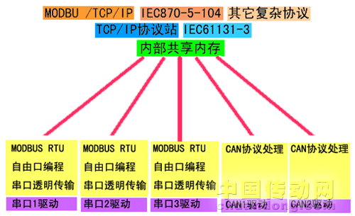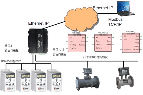 騰控科技經(jīng)過1年多的研發(fā),于2011年5月推出符合IEC61131-3編程規(guī)范、可自由編程的網(wǎng)關(guān)產(chǎn)品——TG900P 工業(yè)級可編程協(xié)議網(wǎng)關(guān)。TG900P設(shè)計了自由口編程功能模塊,包括3種功能模塊,PORT_OPEN ,PORT_READ,PORT_WRITE。