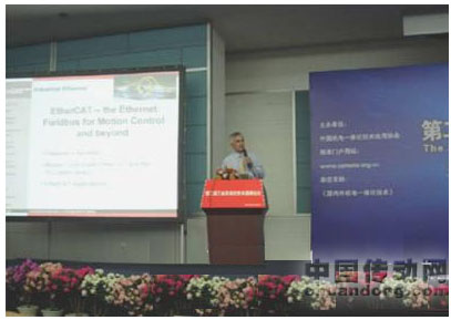 EtherCAT 技術(shù)協(xié)會(huì)主席Matin Rostan 先生在高峰論壇上介紹EtherCAT 技術(shù),并