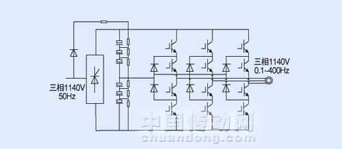 產品特點 ★ 性能特點 *適用于大慣量負載、位勢負載、高精度、快速響應等高端應用場所 *具有矢量控制、V/F控制切換功能,可按使用要求在 V/F控制、V/F帶PG、無速度傳感器矢量控制、矢量控制帶PG的四種模式中任選 *具有電機參數自辨識功能,負載適應能力強 *開環(huán)低速高額定轉矩輸出,速度控制可達100:1 *閉環(huán)零速亦可進行全轉矩控制,控制范圍可達1000:1 *先進的電機自動調諧功能,可使電機工作在最佳狀態(tài) *節(jié)能控制功能可使電機高效運行。配合PID調節(jié)器可實現完全的自動化運行 *滑差補償功能可使電機穩(wěn)定運行 *內置自動轉矩補償功能,有/無PG均可獲得超強的啟動轉矩 *使用速度反饋進行速度控制,可使電機高精度穩(wěn)定運行 *使用力矩控制功能,可使電機恒力矩運行 *具有故障自動復位功能,可在非實質性故障狀態(tài)下連續(xù)運行 *大屏幕LCD顯示,界面友好,多種參數可在線調整且具有參數拷貝功能,使用方便 *對電網污染小,可高功率運行 ★ 系統結構特點 *逆變部分用傳統的中性特點箝位三電平PWM結構 *電路結構簡單,器件數量少,整機可靠性高。不需功率器件串聯,就可獲得較高電壓輸出 *輸出電壓波形更接近于正弦,電壓中高次諧波含量低 *dv/dt小,對電機絕緣性能無特殊要求 *體積小,成本低 系統結構圖
