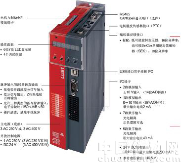 ServoC功率范圍從400W到3000W;有400V和230V兩種電壓等級(jí)產(chǎn)品;可驅(qū)動(dòng)第三方電機(jī),并能自動(dòng)識(shí)別電機(jī)參數(shù)和自動(dòng)設(shè)定控制器參數(shù);經(jīng)濟(jì)型總線通訊;多功能調(diào)試面板;具有主令脈沖輸入及編碼器仿真輸出端口;可編程功能;扭矩、速度、位置三種預(yù)設(shè)模式,上電即用;可使用USB電纜進(jìn)行調(diào)試;四通道數(shù)字濾波器功能的PC調(diào)試軟件―DriveManager。