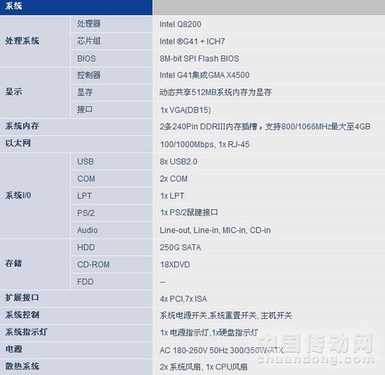 ◆ 基于Intel G41+ICH7芯片組,搭配LGA775 Q8200處理器;