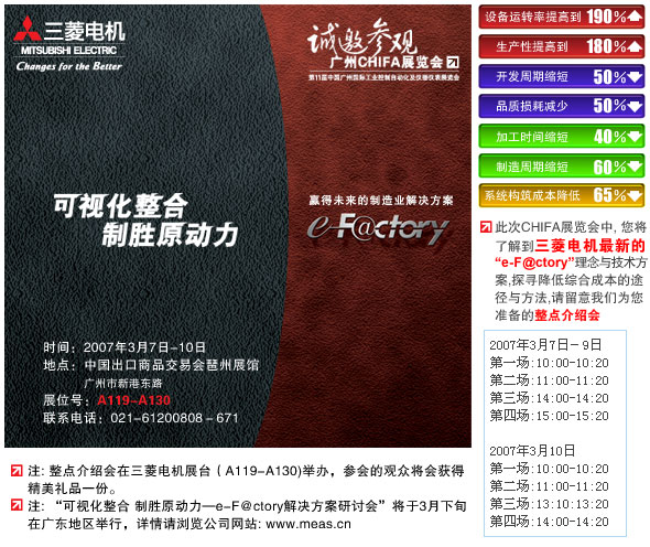 導(dǎo)語:三菱電機(jī)自動化參加廣州CHIFA展覽會